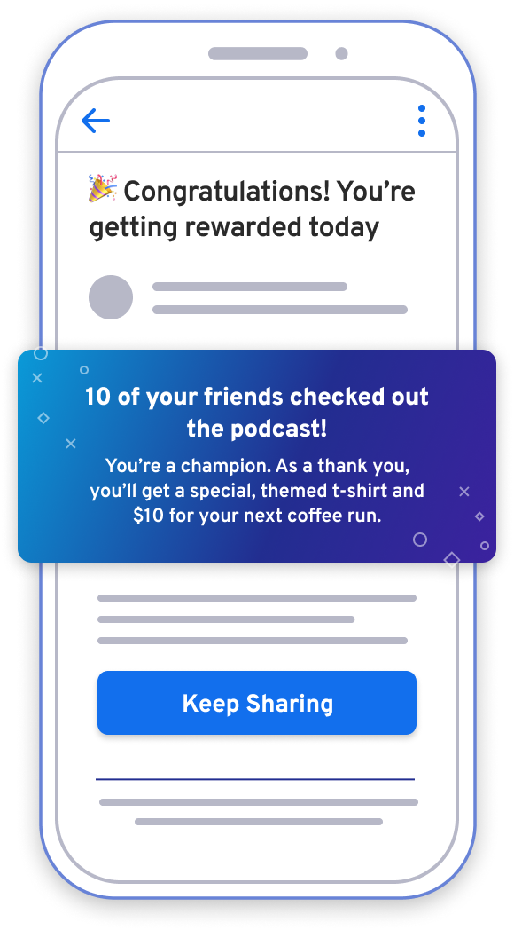 We'll handle all the referral tracking for you and send you an alert when an ambassador reaches a milestone that you've set for a reward.